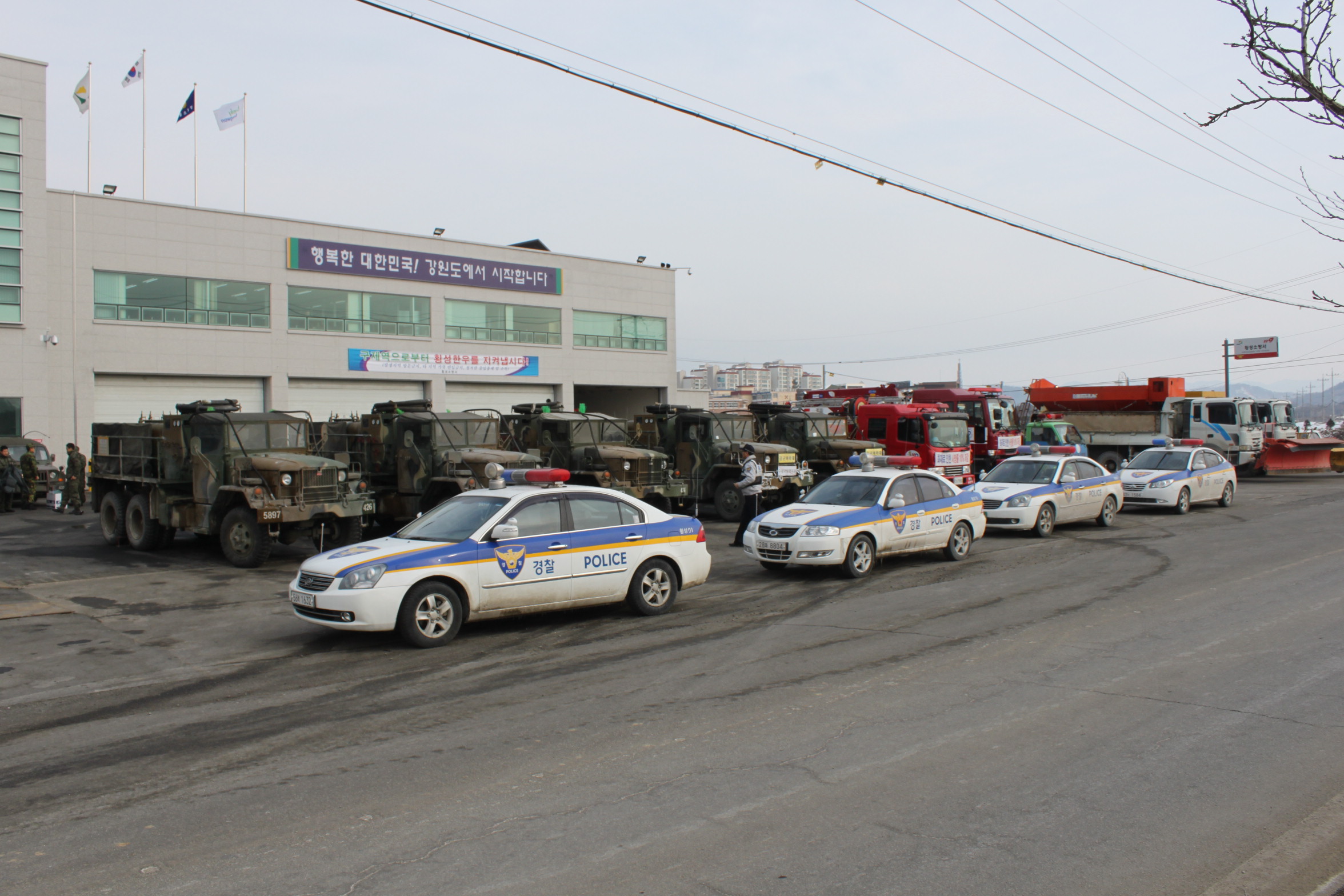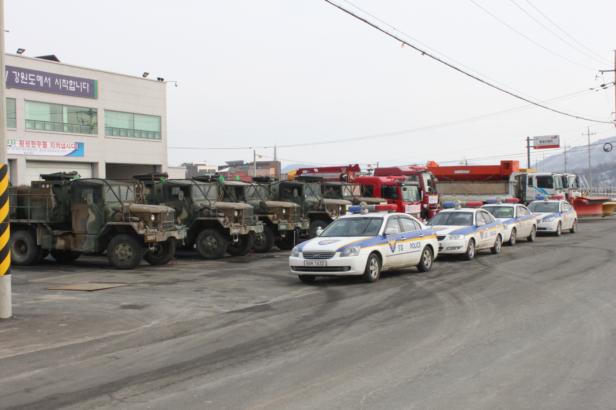 횡성소방서는 구제역 발생 이후 각급 유관 기관.단체의 방역 전초기지가 되어 방역초소 급수지원 뿐만 아니니라 경찰차-제독차-펌프차-제설차가 1조가 되어 4개조로 편성된 도로방역 전담조를 운영하여 방역활동에 만전을 기하고 있다.