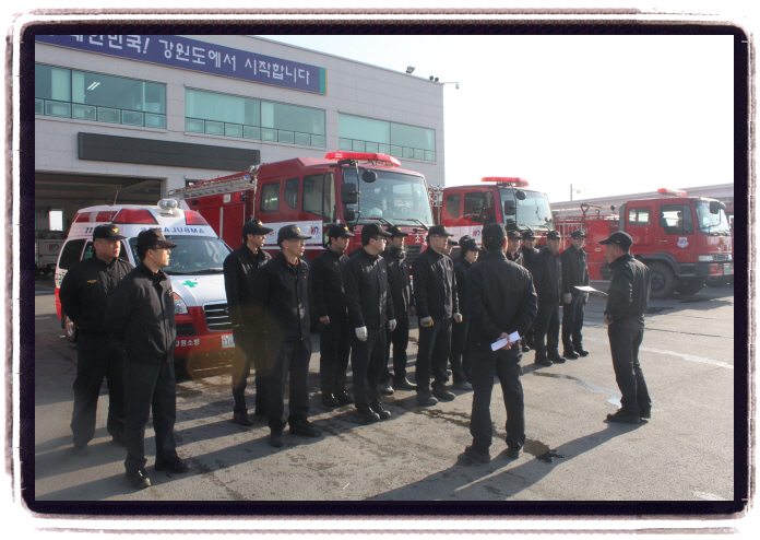 횡성소방서(서장 조근희)는 "현장에 강한 소방관 만들기" 일환으로 교대점검시 전 직원이 함께 동참하여 소방장비 점검을 실시하였습니다. 최강의 소방관이 되기위하여는 모두가 초심으로 돌아가 기초부터 다시 시작하는 마음으로 소방관에게 필요한 이론과 실습을 병행하여 현장에서 강한 소방관이 되도록 최선을 다하겠습니다.