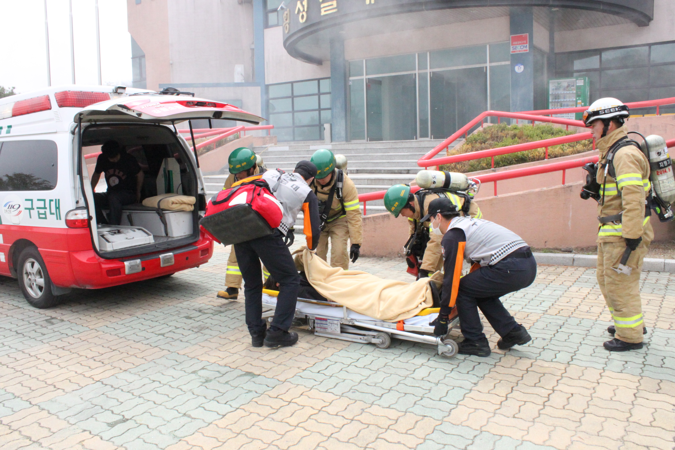 횡성소방서(서장 조근희)는 5. 4(수) 11:00 횡성실내체육관에서 지진대비 안전한국훈련을 실시하였다. 이번훈련은 횡성소방서 외 7개 유관기관이 참여하였으며 인원 160여명, 장비 30여대가 동원되었으며, 인명구조, 구급활동, 화재진압 순으로 훈련이 진행되었다.