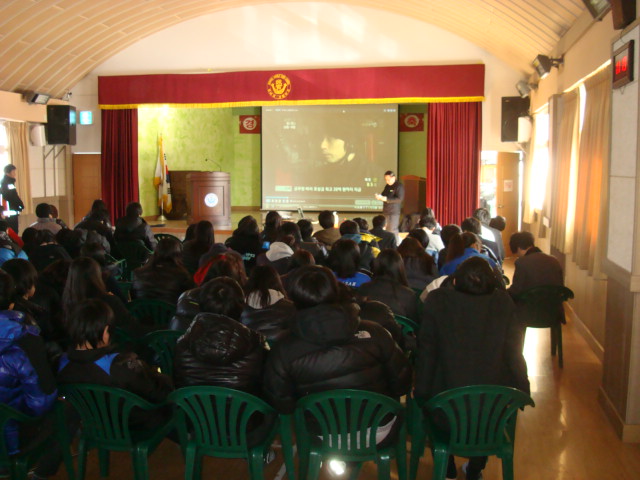 횡성소방서(서장 조근희)는 26일 오전 10시 둔내중.고등학교 전교생을 대상으로 소방안전교육 및 체험'을 하는 시간을 가졌습니다. 올 겨울들어 가장 추운날씨에도 불구하고 학생들은 추위에 아랑곳없이 생명지킴이가 되고자 하는 열망으로 소방안전교육에 집중했습니다. 시청각교육으로 사례들을 살펴보고 실질적으로 체험을 하면서 학생들은 나도 할 수 있다는 자신감을 가졌다고 전했습니다.