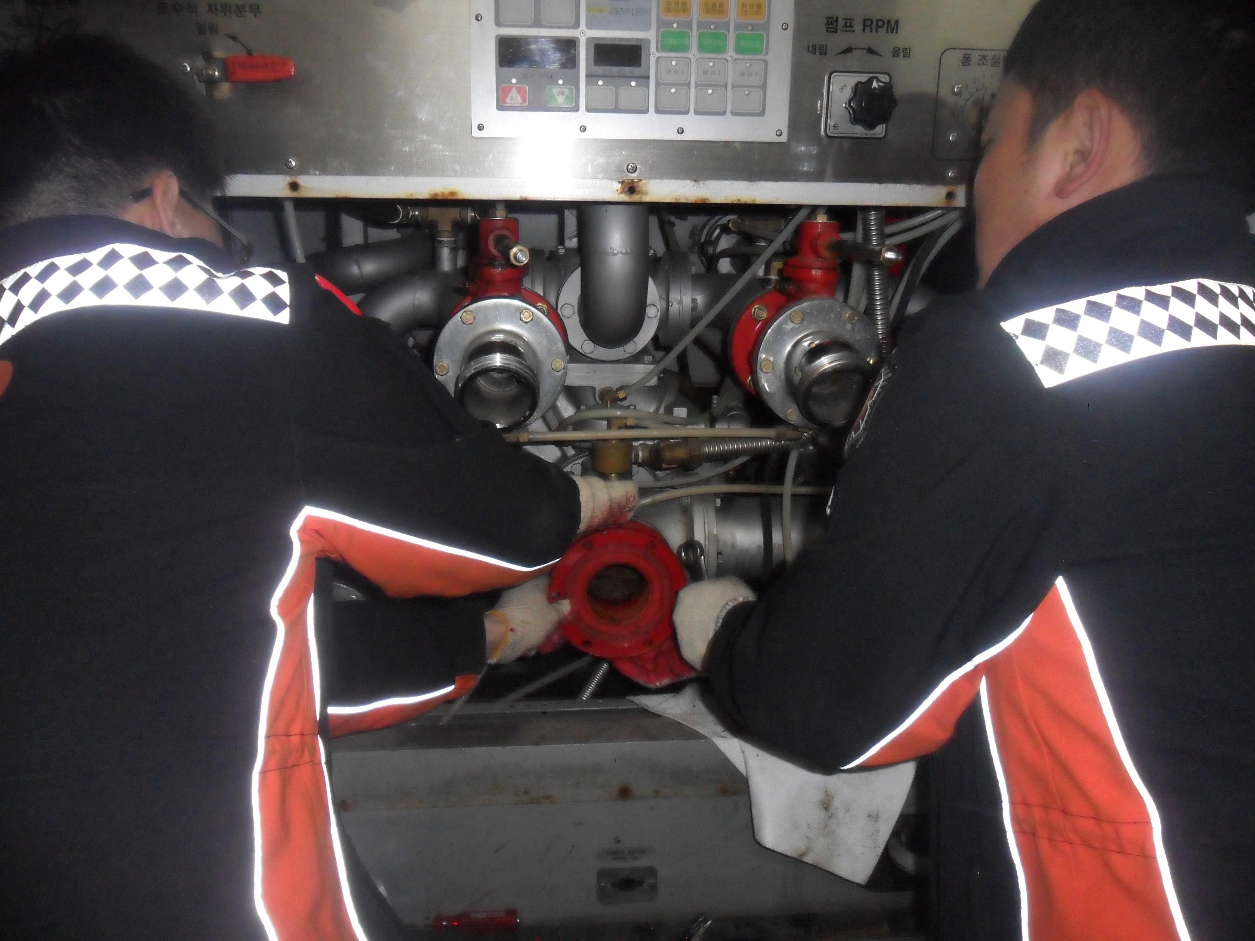 횡성소방서(서장 조근희) 2012.4.3.(화). 14:00 횡성119안전센터에서는 비상시 출동에 대비하여 흡수관과 중계구 캐치 고무패킹의 누후로 인하여 고무가 경화되어 75mm구경 흡수관과 65mm구경 중계구 고무패킹 각 2EA를 교환하였습니다. 신속,정확,안전을 기하기 위해 항상 차량정비점검을 실시하여 군민들의 안전하고 행복한 삶을 지키기 위해 노력할것입니다.