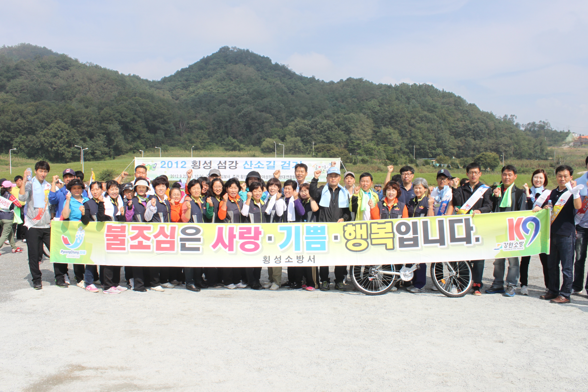횡성소방서(서장 정은철)은 22일(토) 섬강 산소길 걷기 행사에 참가하여 의용소방대원들과 함께 군민과 함께하는 화재예방 및 소방홍보 캠페인을 실시 하였습니다.