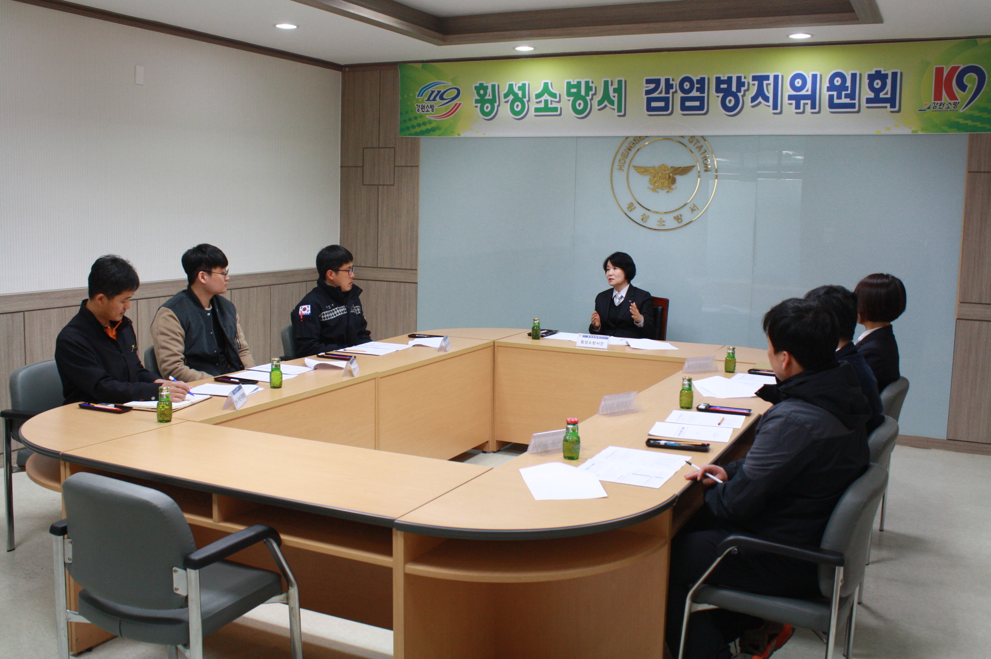 횡성소방서(서장 원미숙)는 16일 횡성소방서 소회의실에서 원미숙 서장, 박찬우 지도의사가 참석하여 상반기 감염방지위원회를 개최했다.
