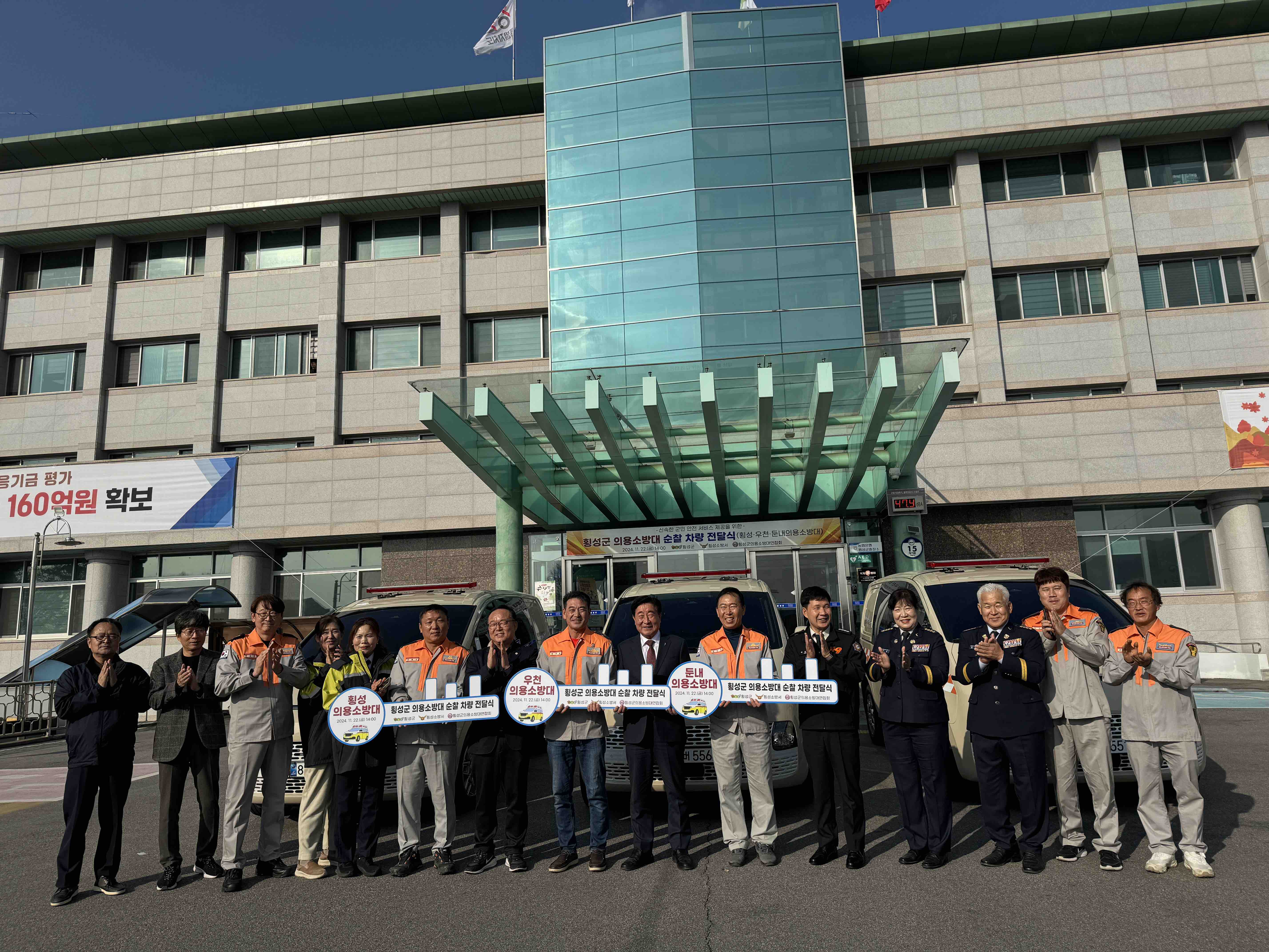 오늘 횡성군청에서 횡성소방서 의용소방대연합회 순찰차량 전달식을 가졌습니다.