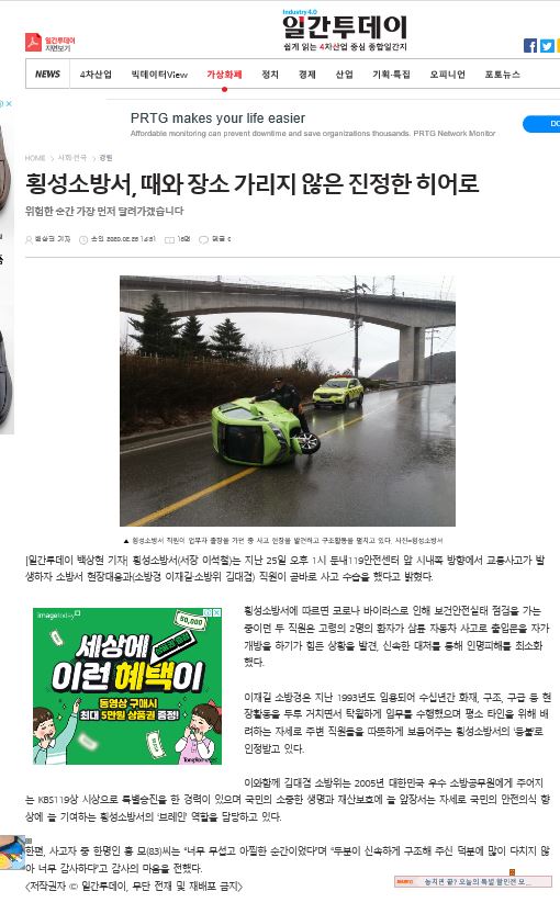 | 2418 | 횡성소방서, 때와 장소 가리지 않은 진정한 히어로 | 예방민원계 | 2020-02-27 | 734 | |