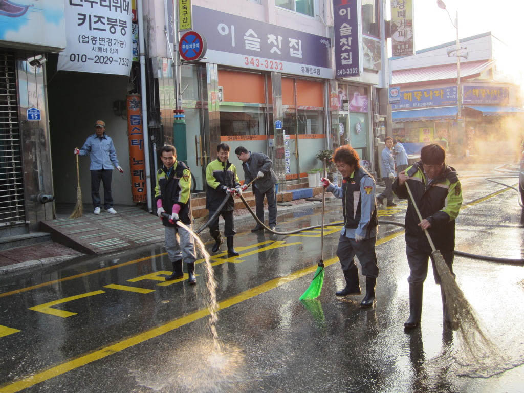 이번 시가지 정화활동에는 횡성군청 및 횡성로터리, 시계탑 등 군민들의 왕래가 많은 중심가를 대상으로 횡성의용소방대에서 자체 보유한 펌프차를 활용하여 물청소를 실시하고 쓰레기 수거활동을 펼쳤습니다.