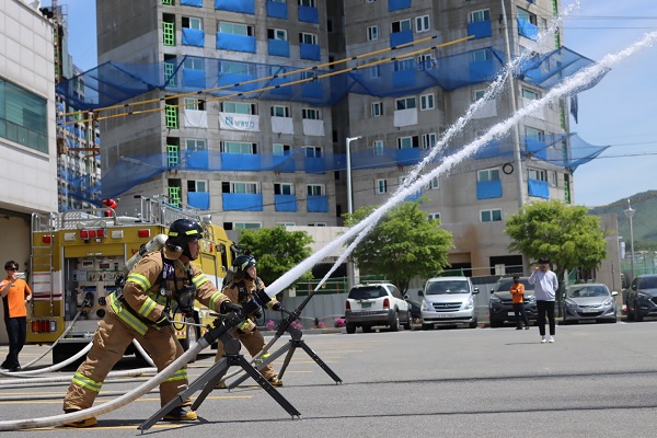 횡성소방서(서장 이석철)는 8일 오후 1시 횡성 시장 등 4개소에서 현장대응역량 강화를 위한 이동식 자립형 방수총 시연회를 실시했다고 밝혔다