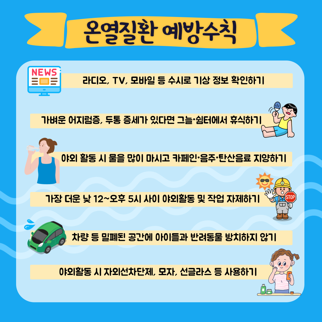 오늘·내일 비온 후에 다시 고온의 날씨가 예측되는 만큼 안전수칙 준수로 시원하고 건강한 여름보내시길 바랍니다!
