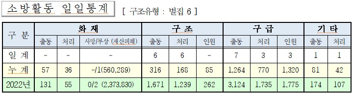 ○ 구조 6건(벌집 6)