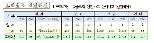 ○ 구조 22건(벌집 18, 동물 1, 산악 1, 기타안전사고 2)