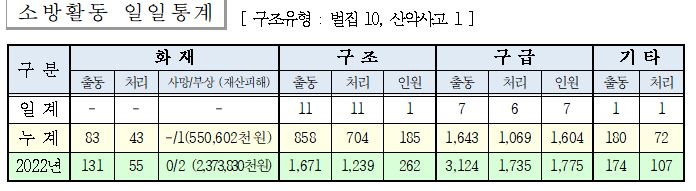 ○ 구조 11건(벌집 10, 산악사고 1)