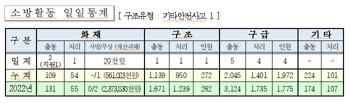 ○ 구조 1건(기타안전사고)