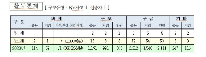 ○ 구조 2건(E/V사고 1, 실종자 1)