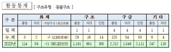 ○ 구조 1건(동물구조 1)