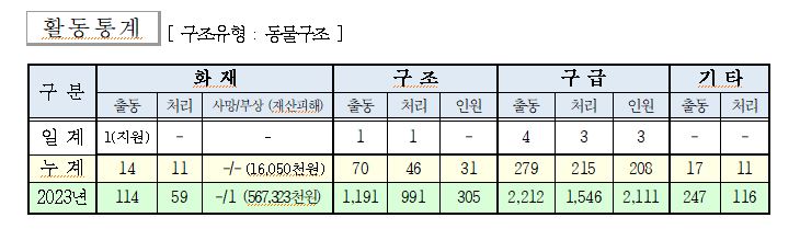 ○ 구조 1건(동물구조 1)