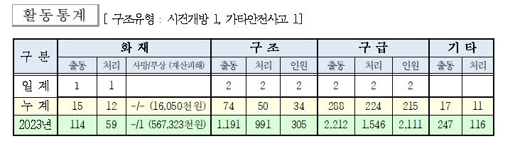 ○ 구조 2건(시건개방 1, 기타안전사고 1)
