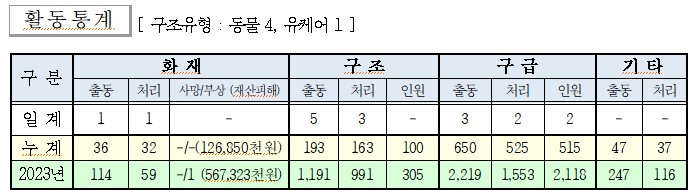 ○ 구조 5건(동물 4, 유케어 1)
