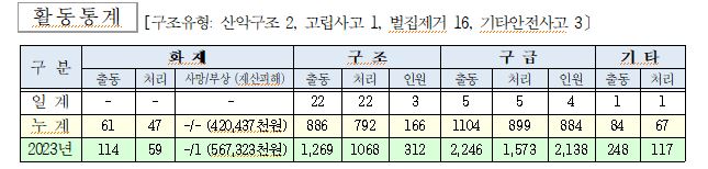 ○ 구조 22건(산악구조 2, 고립사고 1, 벌집제거 16, 기타안전사고 3)
