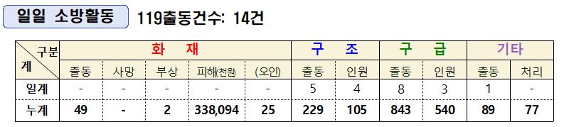 인제소방서 일일소방상황(6. 14.)