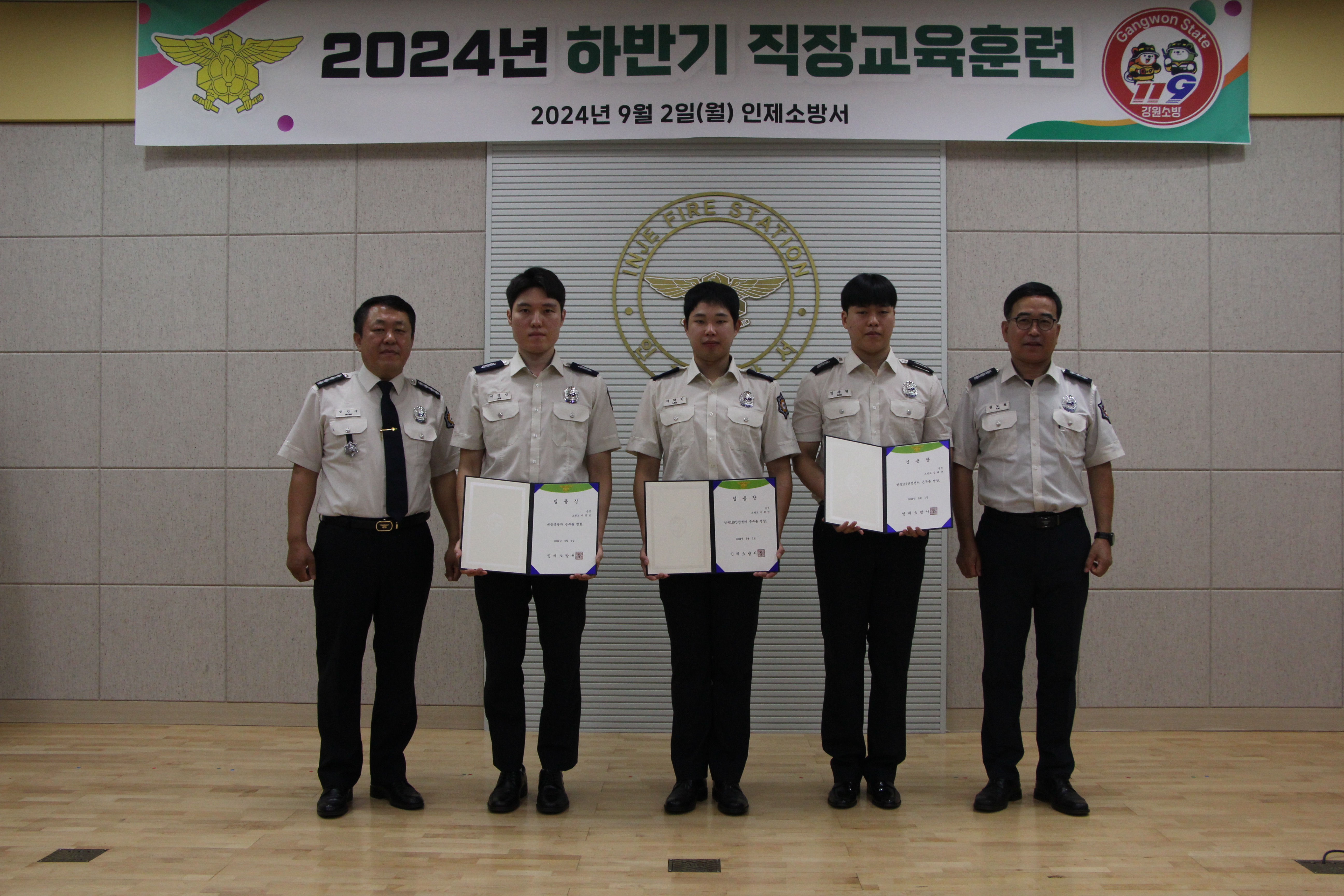 금일(9월 2일) 인제소방서 대회의실에서 2024년 하반기 직장교육 행사를 개최하였습니다.