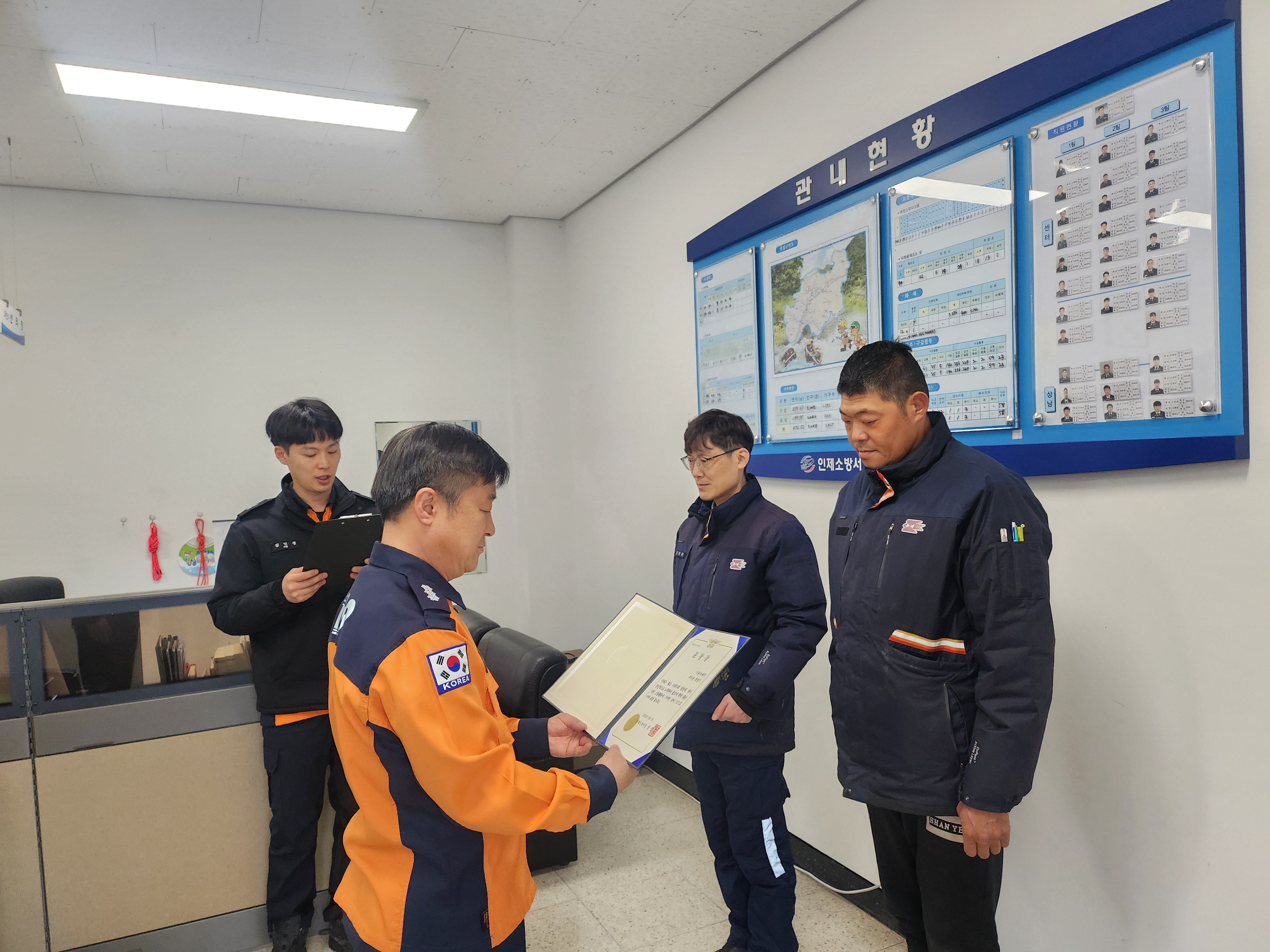 인제소방서는 7일 초기 화재 신고·진압 유공자 표창장 수여식을 진행하였습니다.