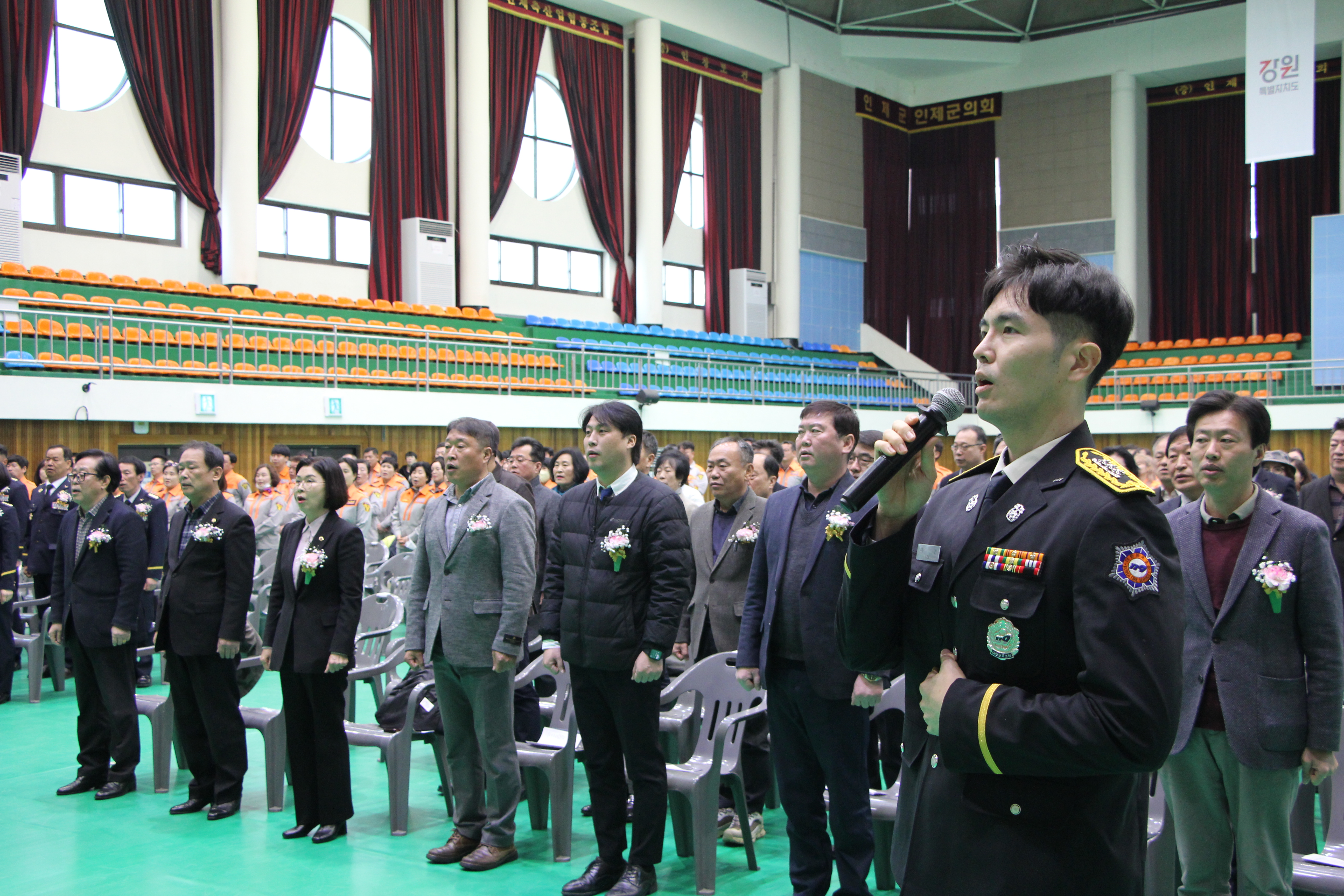 금일 인제소방서는 의용소방대의 날을 맞이하여 인제실내체육관에서 기념식을 진행하였습니다.