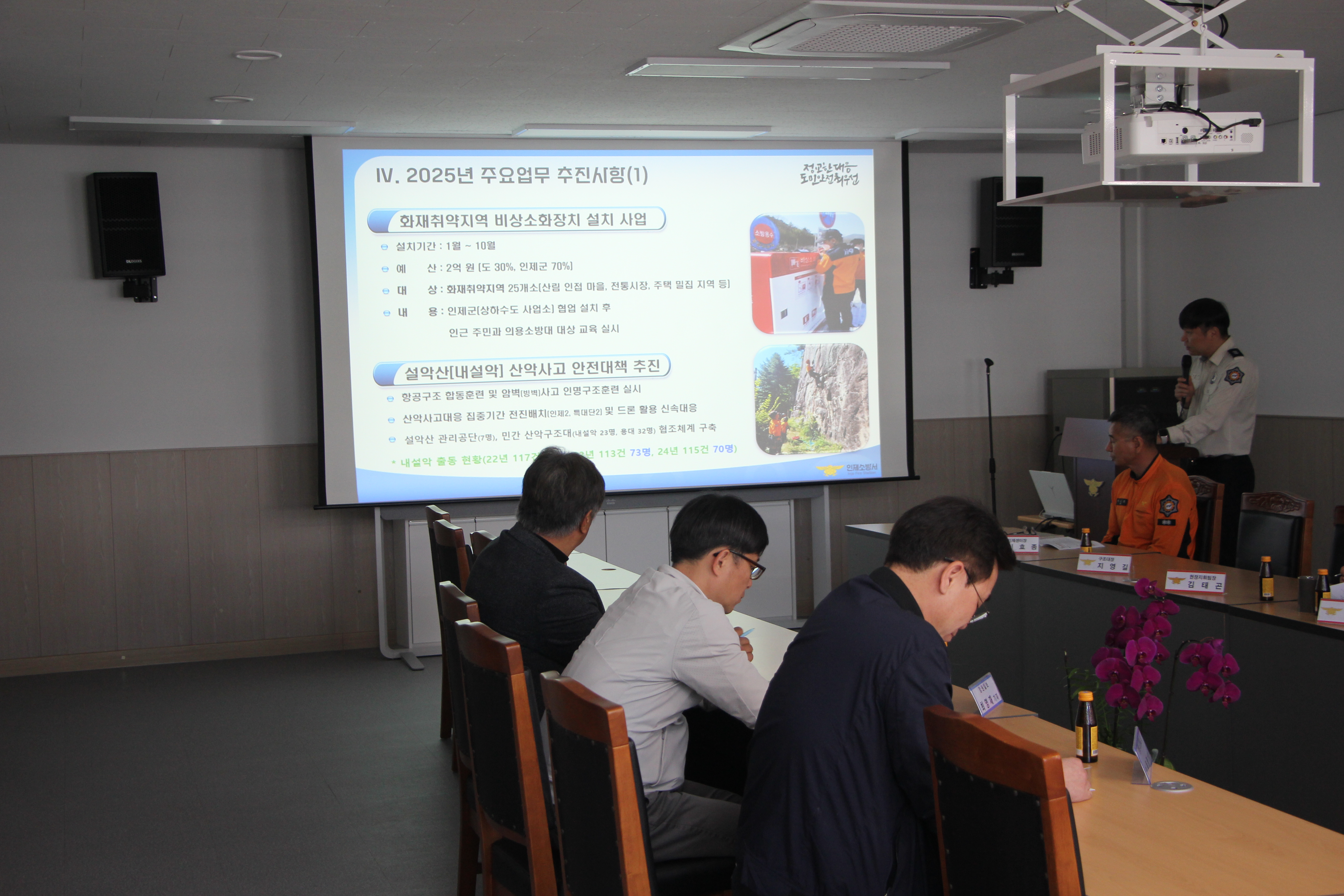 주요업무 추진사항 전달, 소방장비 소개 및 기념촬영, 오찬 등으로 진행되었습니다.