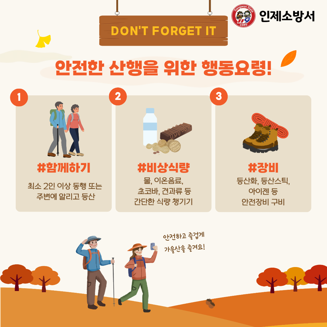 인제소방서, 가을철 산행 안전수칙 준수 당부