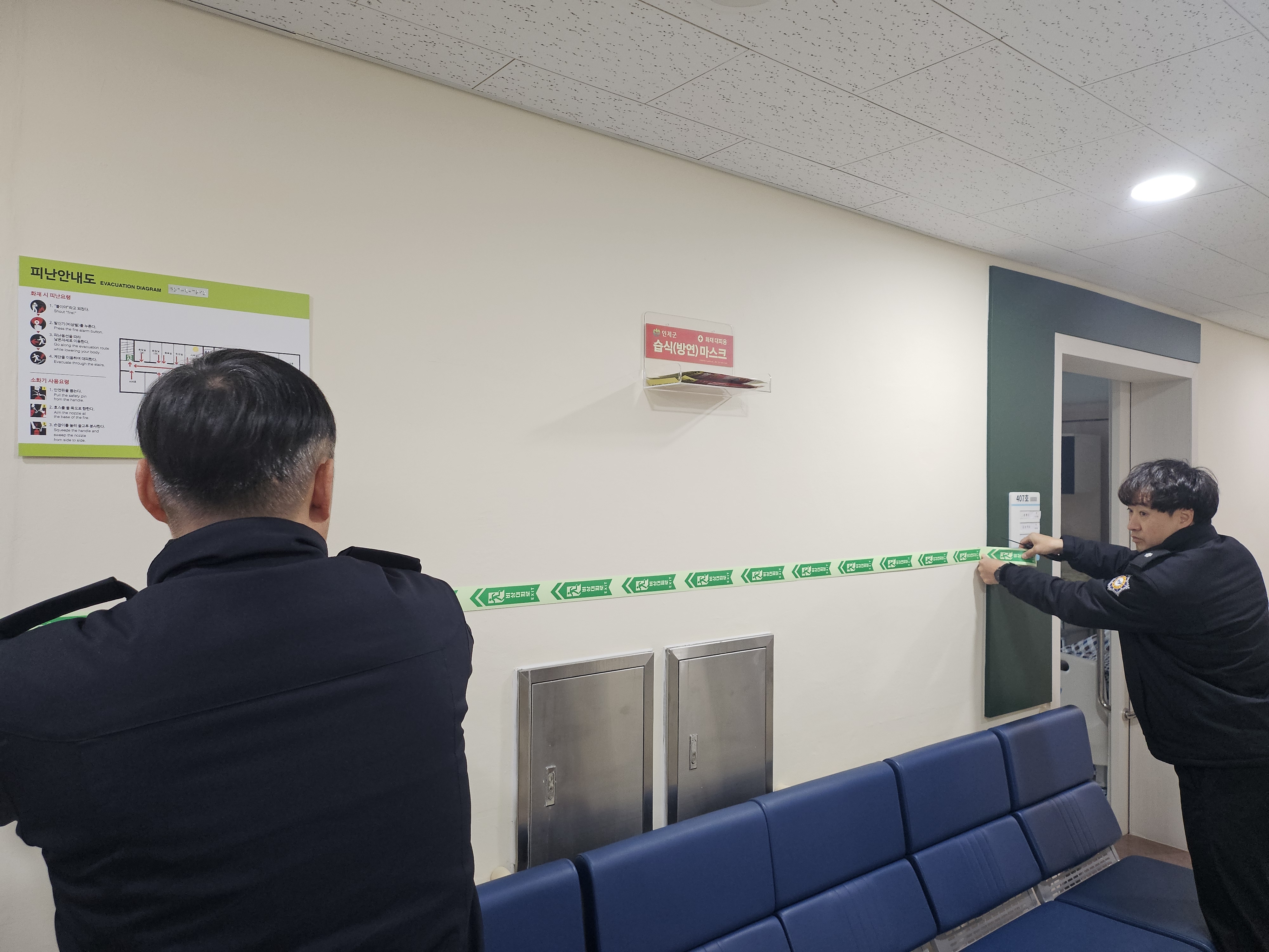 인제소방서는 23일 관내 요양시설 2개소를 방문하여 화재안전컨설팅 및 피난안전용품을 배부하였습니다.