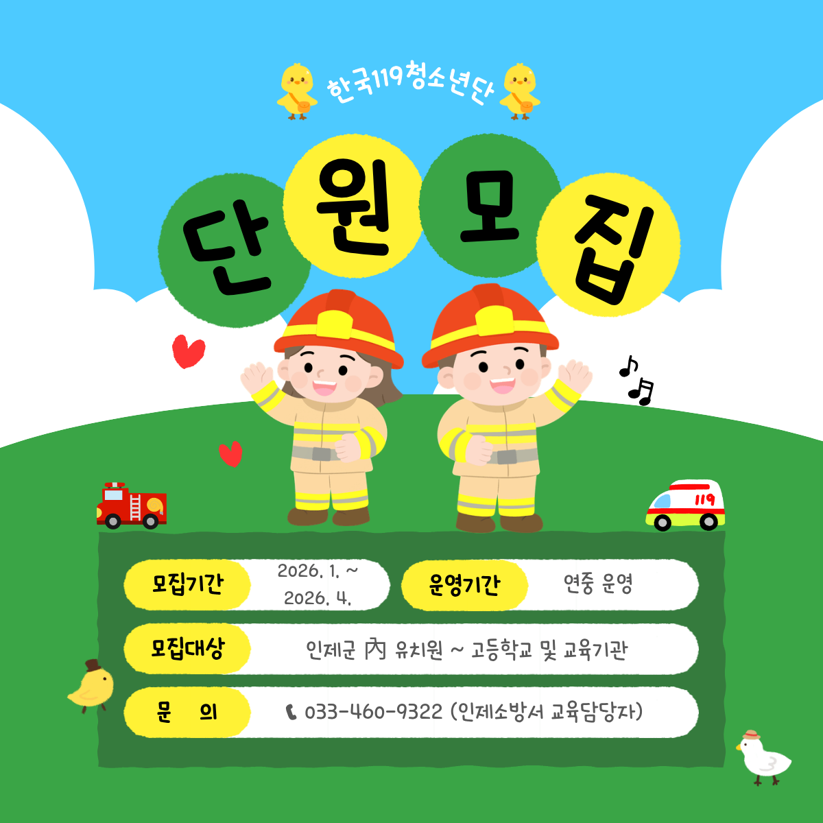 문 의 : ☎ 033-460-9322 (인제소방서 대응총괄과 교육담당자)