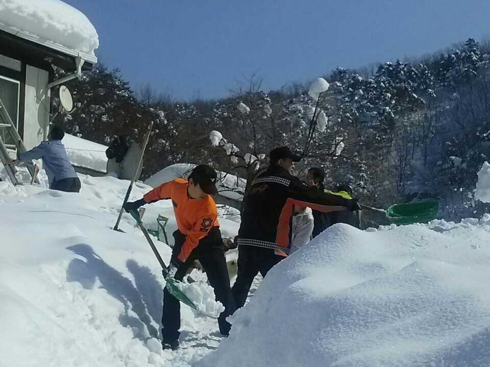 이번 복구 활동에는 소방공무원 및 의용소방대 60명이 지원 인력을 3개조로 편성하여 제설피해복구가 요구되는 마을 전역에서 제설 작업을 실시했다.