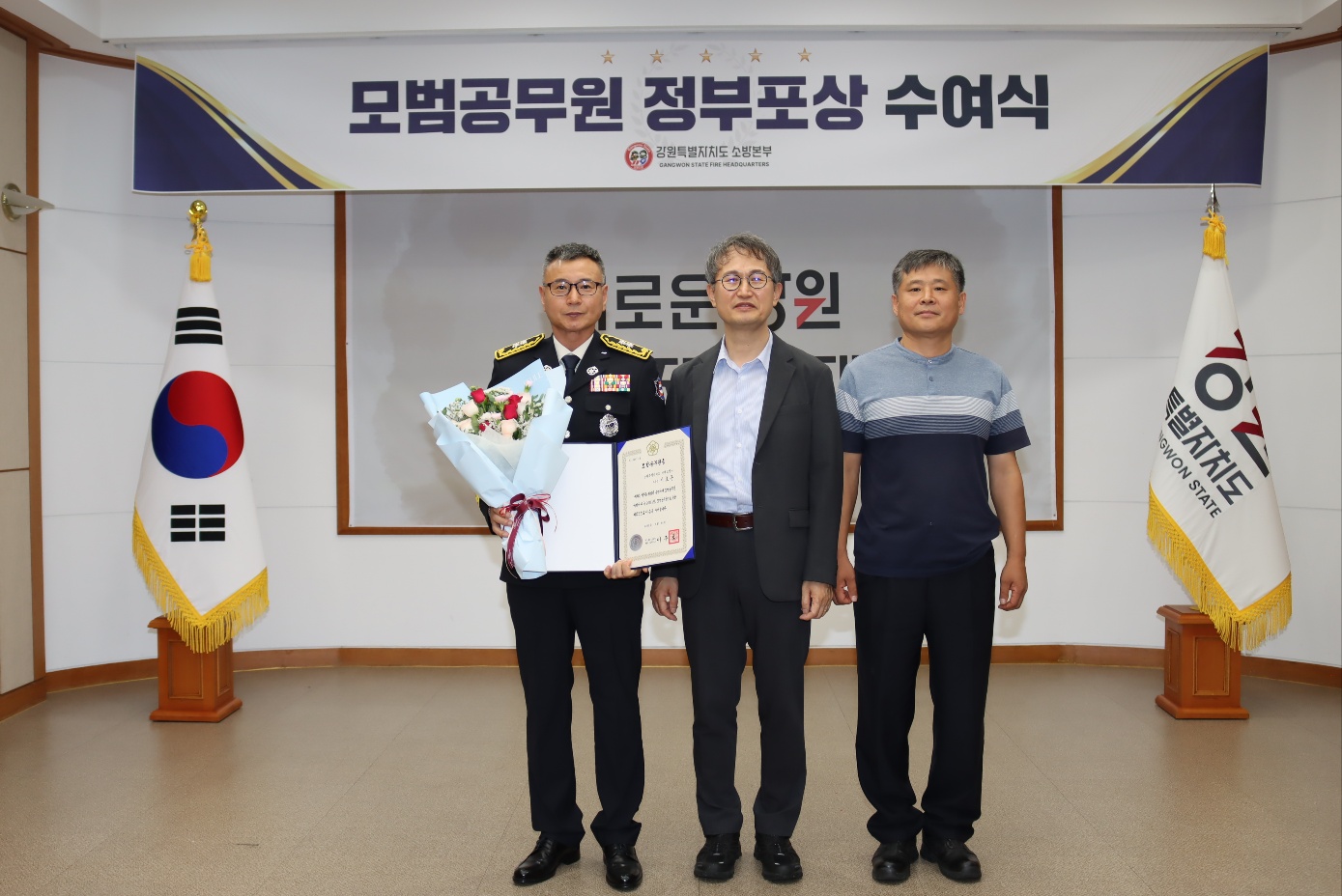○ 인제소방서 이효종 인제119안전센터장이 지난 15일 강원도청에서 소방활동에 앞장 선 공로를 인정받아 2025년 모범공무원으로 선정돼 표창을 받았다.