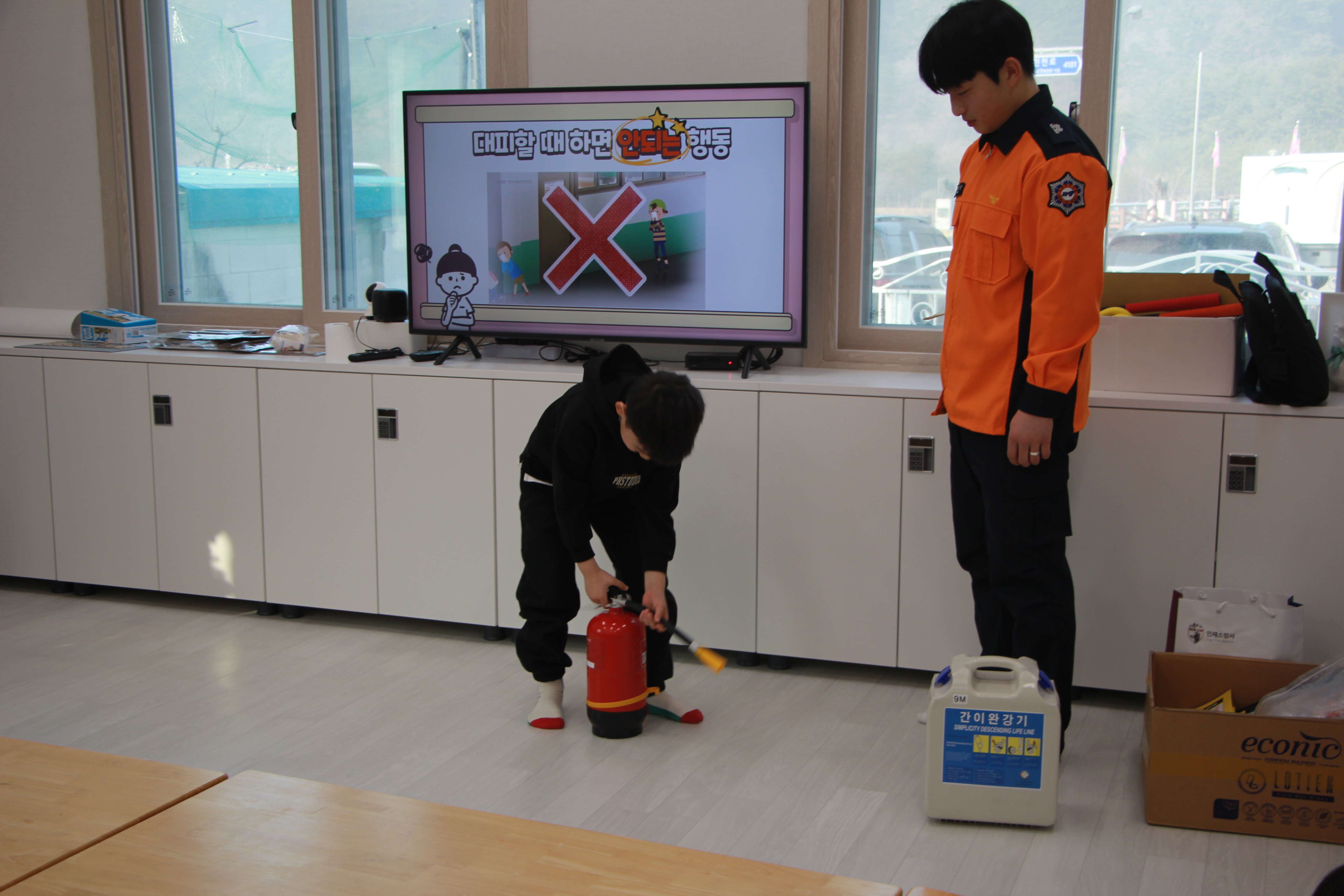 완강기·소화기 사용법과 화재 시 대피요령 교육 진행