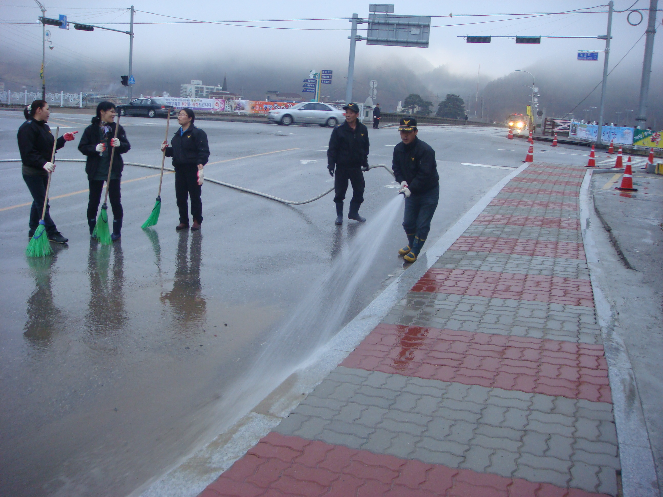도로물청소를 하였읍니다.