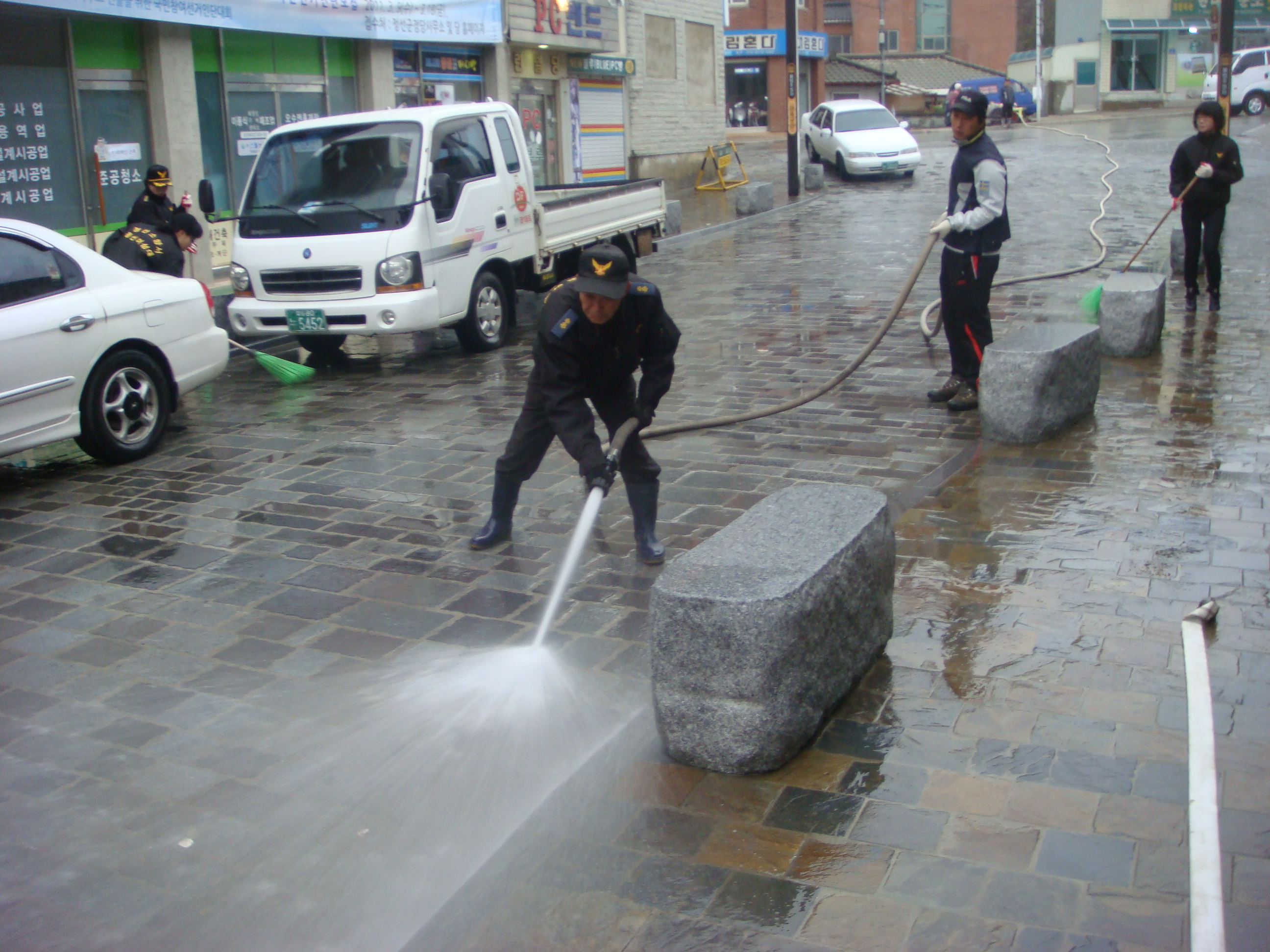 물청소를 실시하였읍니다. 정선을 방문하는 관광객들에게