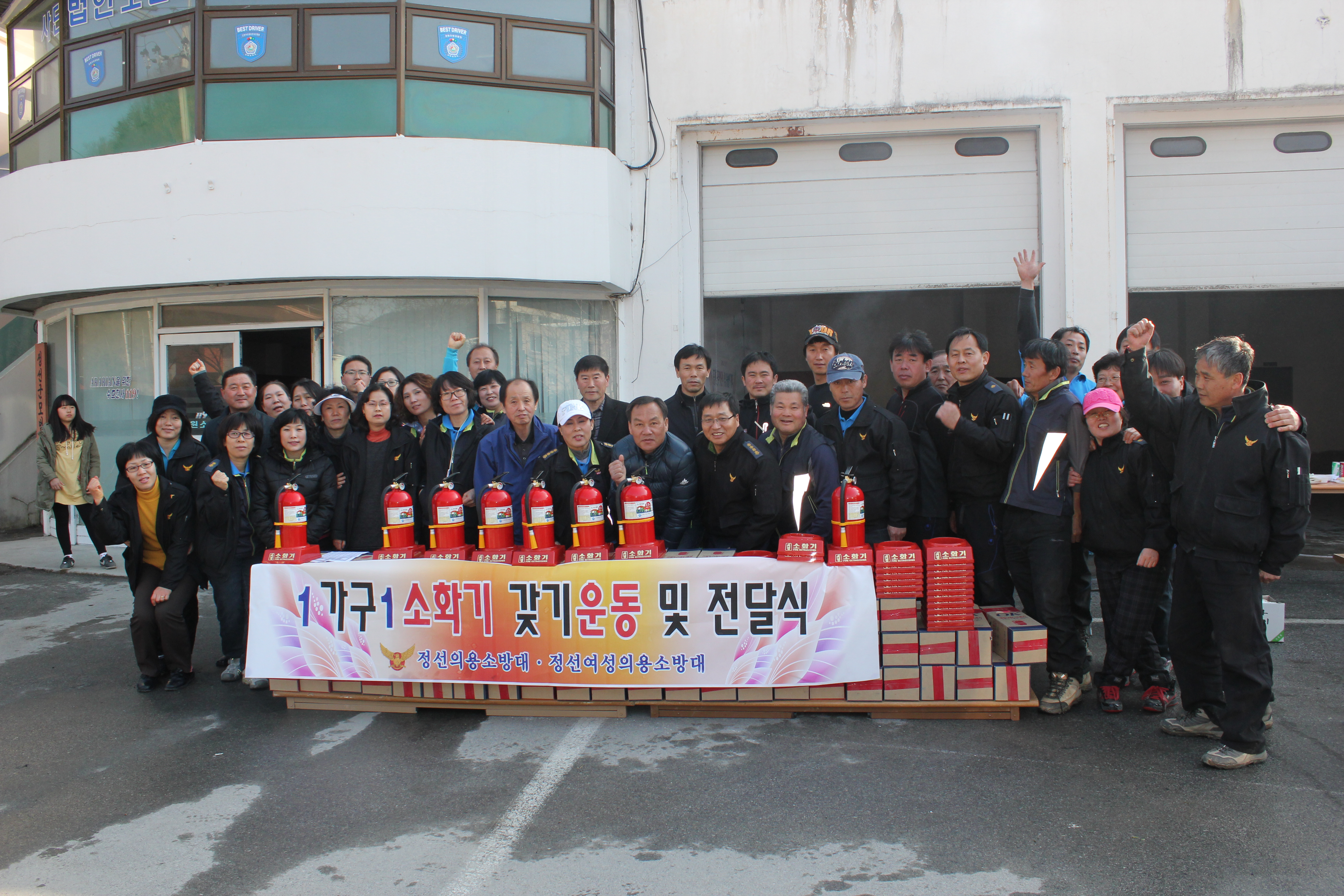 그리고 남.여 전 대원에게 소화기 한대씩 증정하였으며