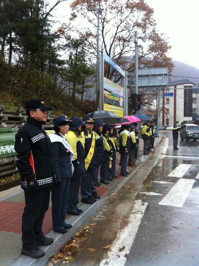 정선소방서 주관 남여의용소방대원들과 정선읍 소재 봉양리 삼익주유소(앞) 북실리(사거리 신호등)및 정선5일장터에서 불조심캠페인을 실시하였다.
