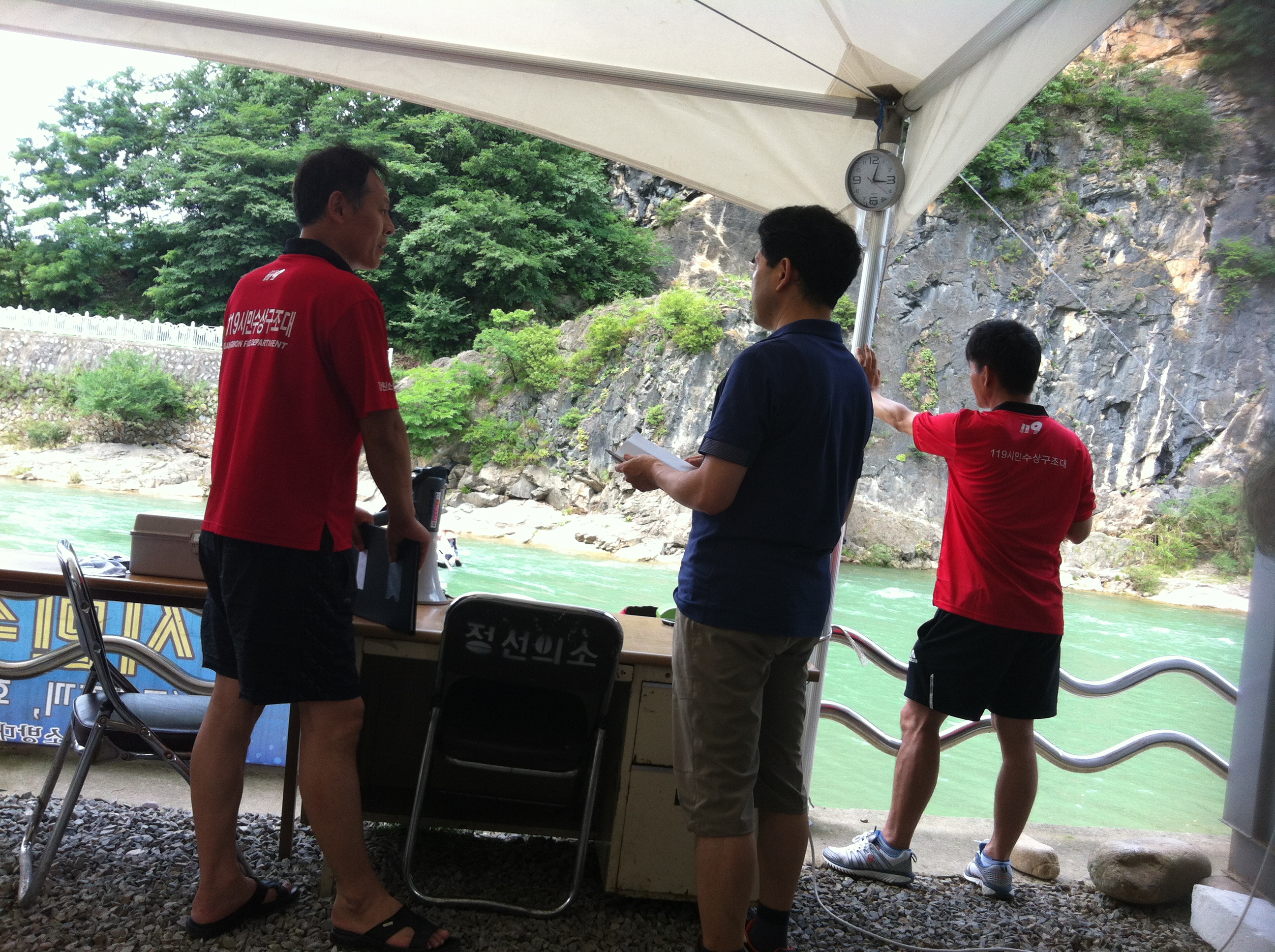 정선여성대-범바위 근무중 도 소방방재청 담당직원이 방문하여 근무의 애로사항과 안전을 당부