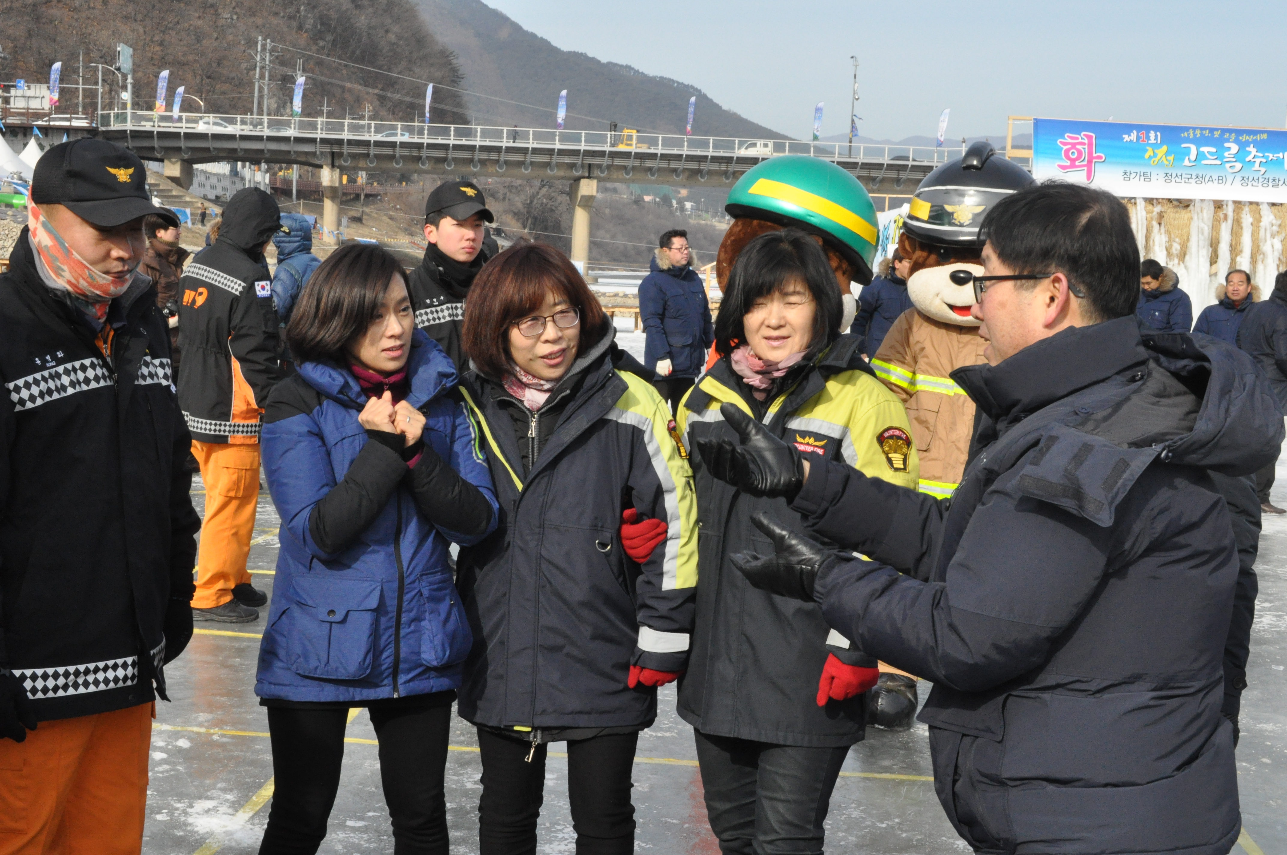 정선여성의용소방대는 정선고드름축제장에서 열린 얼음줄다리기 대회에 참여해 우승을 차지하였습니다.