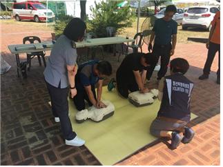2018. 7. 27(금) ~ 7. 30(월) 여량아우라지 뗏목축제장 일대에서 정선소방서 예방계 직원분들과 함께 의용소방대 전문강사 교육 운영을 실시하였습니다. 여행의 즐거움뿐만아니라 CPR 체험을 통한 유익한 시간이 되었으면 좋겠습니다.