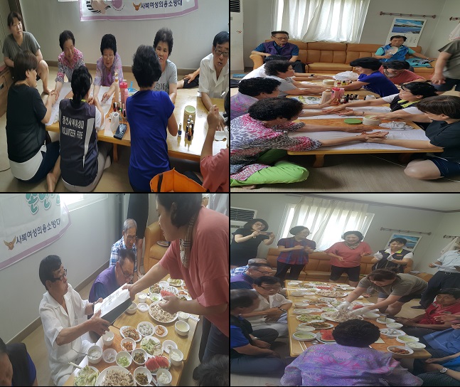 사북여성의용소방대(대장 정옥희 외 15명)은 2018.7.28(토) 사북7리 경로당에서 어르신 음식 제공 및 손맛사지 봉사활동을 실시하였습니다. 어르신들의 얼굴에서 행복이 느껴집니다.