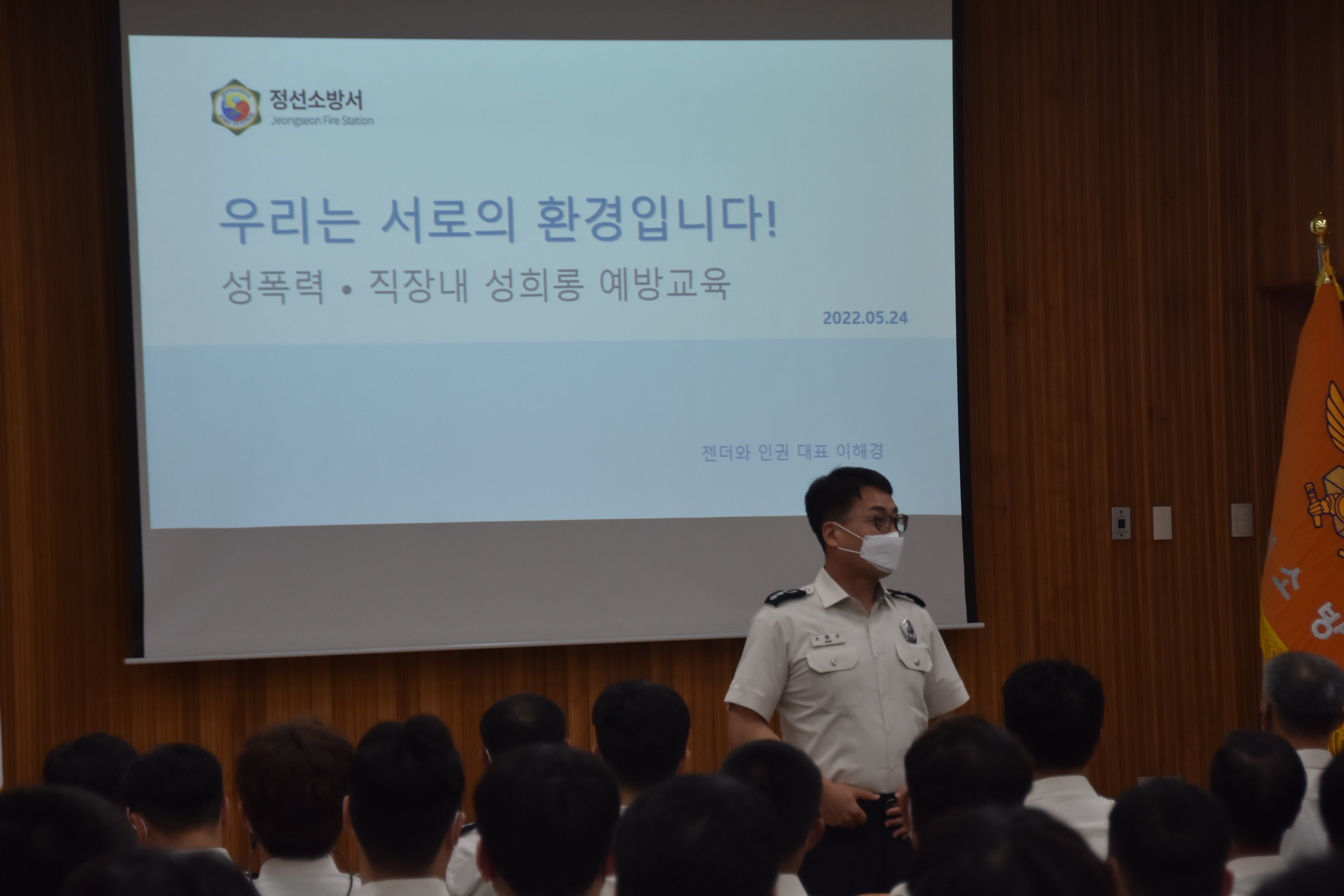 ➤이날 직장교육훈련은 제8회 전국동시지방선거를 앞두고 소방공무원이 지켜야하는 선거 중립 준수 특별교육과 음주운전근절 및 안전사고예방 특별교육을 서장이 진행하였다. 그 후 외부강사의 성희롱·성폭력 예방교육 순으로 진행하였다.