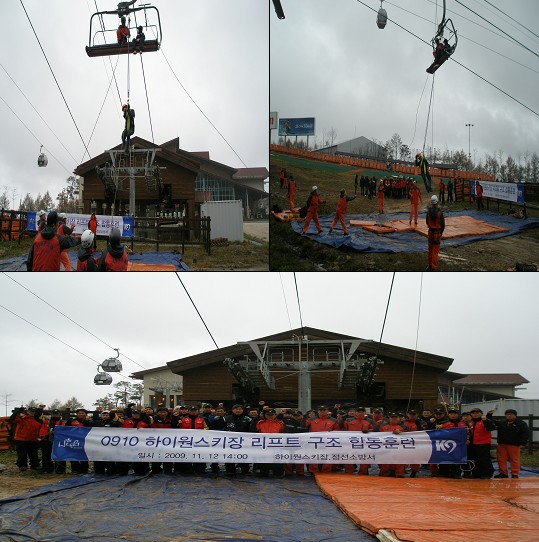 정선소방서(서장 우원기)는 2009. 11.12(목) 14:00 정선 하이원스키장에서 리프트사고를 대비한 합동 인명구조 훈련을 실시하였습니다.
