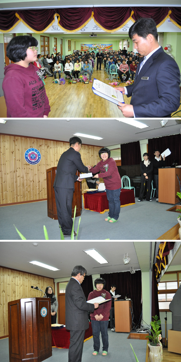 도지사표창에는 정선초등학교 6학년 최영순 어린이가 받게 되었다.