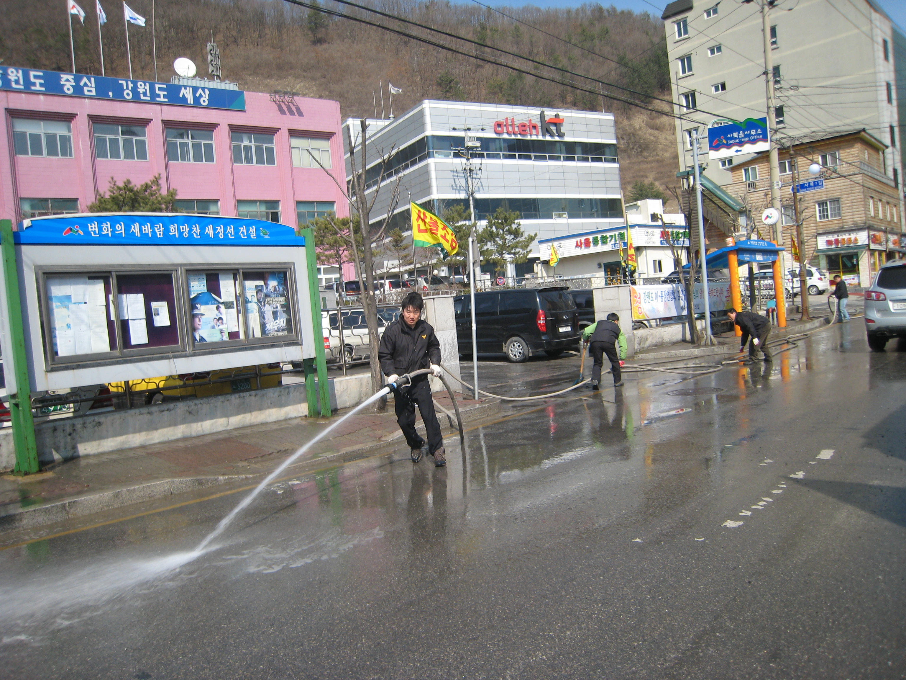 정선소방서(서장 우원기) 고한119안전센터(센터장 정재원)와 사북의용소방대(대장 박대성)에서는 사북 시내 일원에 봄맞이 대청소를 실시 하여 겨우내 쌓인 묵은때를 말끔이 씻어내는 뜻깊은 행사를 실시하였습니다. ^^*