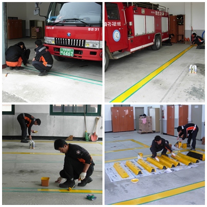 정선소방서(서장 우원기) 임계119안전센터(센터장 김종회)는 11일 자체 안전사고 방지를 위하여 차고내 주차라인 및 스톱바를 도색하였습니다. 식별이 용이한 황색도료로 후방 안전사고제로화를 위한 도움이 될 것입니다.