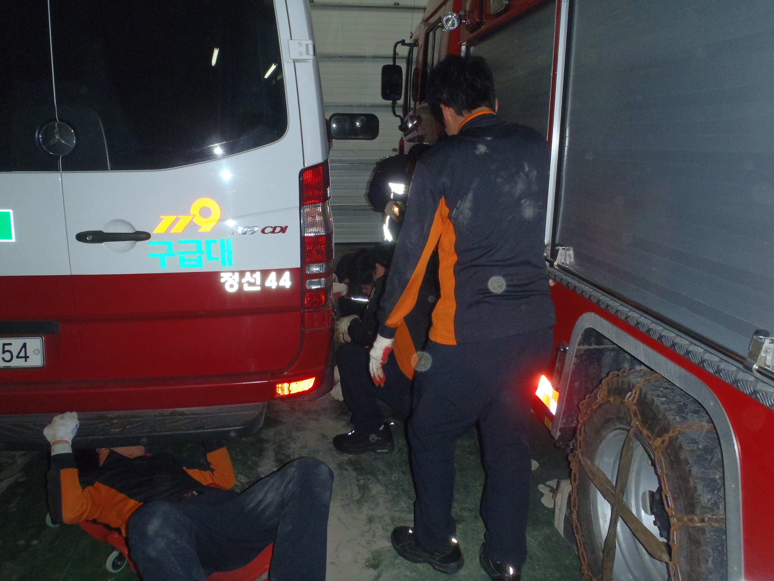 정선소방서(서장 박창진) 정선119안전센터에서는 1월3일 야간 폭설에 대비하여 체인장착 및 교육을 병행 실시하였습니다.