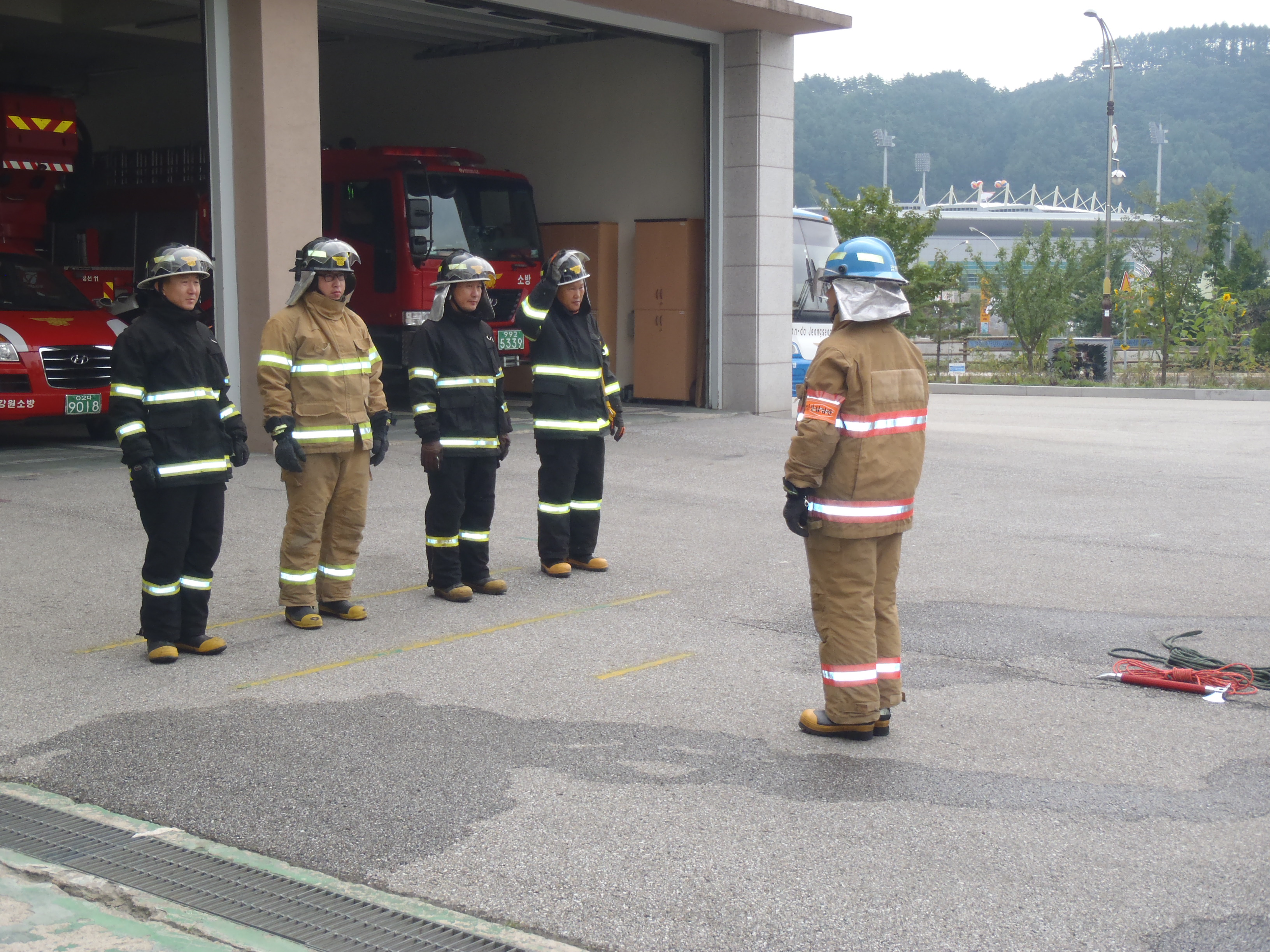 정선소방서(서장 이병광)방호구조과 구조진압대에서는 금일 4인조법 전술 훈련을 실시하였습니다. 평시 전술훈련 내용을 숙지하여 출동시에는 대원들의 각 임무별 특성에 맞는 신속한 화재진압방법을 익히는대 있습니다.