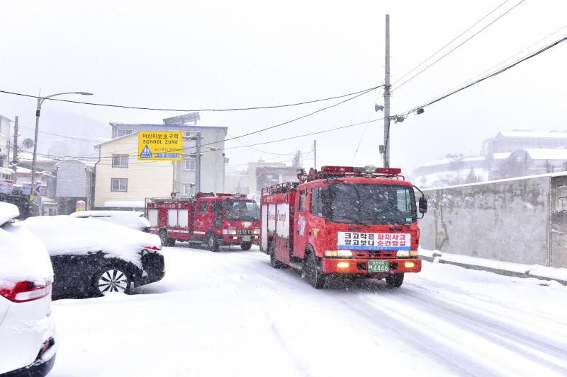 대설주의보가 발효된 궂은 날씨에도 불구하고 시장상인회, 의용소방대원 등