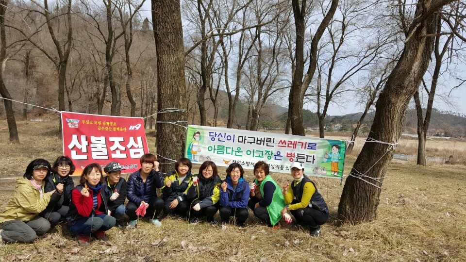 정선소방서(서장 이기중) 임계여성의용소방대는 국토대청결 운동의 일환으로 쓰레기 수거하고, 화재예방 플래카드를 게침하였습니다.